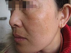 家住山西阳泉的小程是某公司的前台服务,平时都是打扮的美美的上班,可是最近一年不知道是什么原因脸颊上长了好大一块黄褐斑,同事都开玩笑的说小程变成了“黄脸婆”。