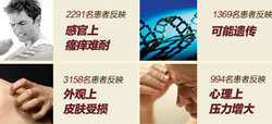 2.皮肤损害:丘疹、水疱、囊肿和斑疹等,抓挠后引起痂皮、溃疡、糜烂和苔藓样变等。【点击,咨询】