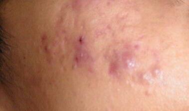 脓疮性粉刺:皮肤上,以脓疮表现为主,绿豆大小,顶部形成白头脓疱,底部颜色为浅红或深红,触碰时感觉疼痛,脓液较为黏稠,治疗不当,常遗留或浅或深的瘢痕。