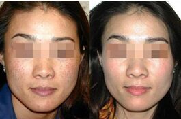 利用中医纳米波复合疗法,一方面中药独方调整内分泌,中药汉方外敷软化色斑,另一方面利用激光将雀斑击碎,相当于将麦子磨成面粉,被击碎的色素,可以被淋巴细胞吞噬,并随着组织循环排出体外,色素随之消退