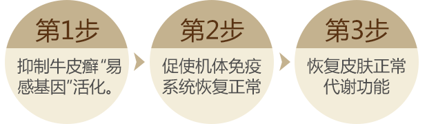 中西医五维净血祛癣疗法”通过中西医五维净血祛癣疗法”通过三步进行平衡阴阳,调整气血,疏通经络,调节免疫系统的紊乱状态,抑制T细胞的异常活化,稳定细胞膜,消除超抗原对免疫系统的影响,从而使皮损消退,恢复皮肤正常的光泽和活力。